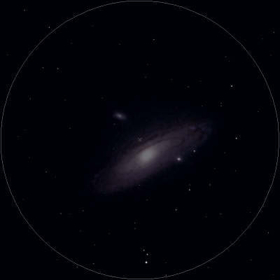 | 探し方 アンドロメダ座の腰の星 ミラクから右膝方向に双眼鏡で見ていくと双眼鏡の視野一つ分(約7°)ずらしたところに ミラク(2等星)→4等星→5等星と見え五等星の近くに、ぼんやりとした米粒の染みが見えると思います |