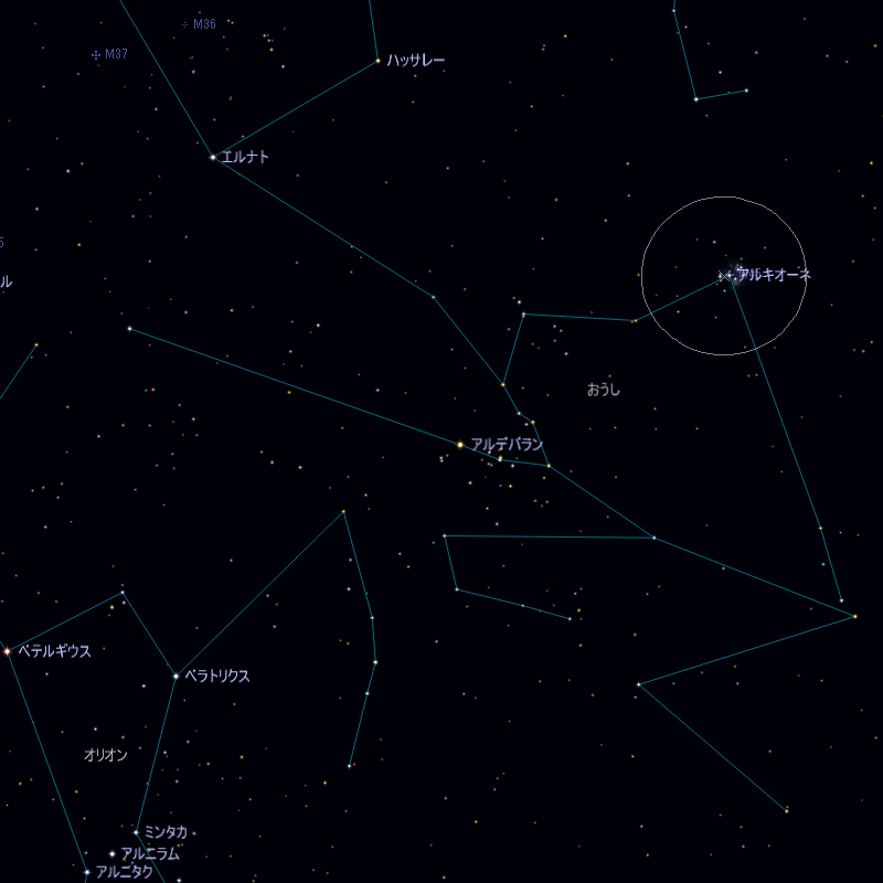| 探し方 おうし座の肩のあたりに在ります おうし座が東に上ってくる頃だとアルデバランから上の方を双眼鏡で見ていくと6〜7個ほどの星の塊が見つかると思います 高度が上がってくると肉眼でもぼんやりと見えます |