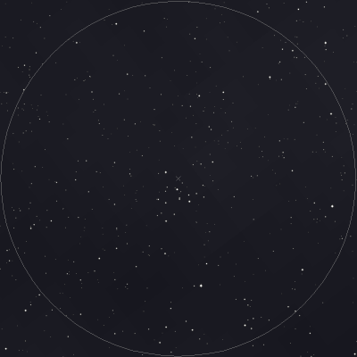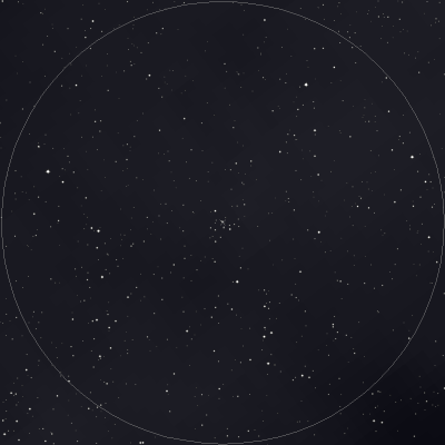 | 満月と同じくらいある大きな散開星団です まばらな大粒の星がボツボツと見える大味な見え方ですが、目印になる星が近くに無いため探すのに少々手間どるかも 光害地では大きな星雲状のシミに見えます |